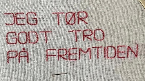 Så derfor skal vi sammen brodere håbet frem i 2026. Og derfor tager Kris sit følsomme broderi med rundt i kirker til Håbets Broderitour.
